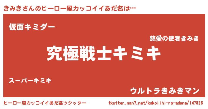 | 男性向けラノベタイトル風あだ名 | 『Re:きみきから始める異世界生活』 |