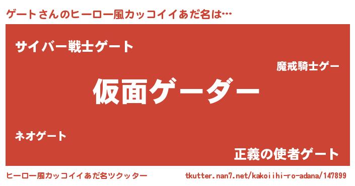 | 男性向けラノベタイトル風あだ名 | 『この素晴らしい世界にゲートを!』 |
