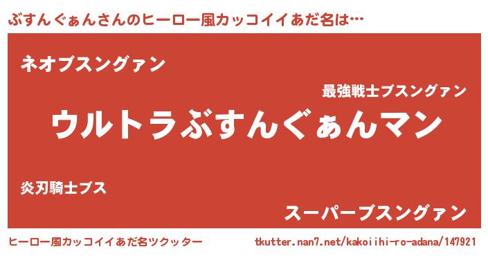 | 女子向けラノベタイトル風あだ名 | 『ぶすんぐぁんの玉の輿計画!』 |