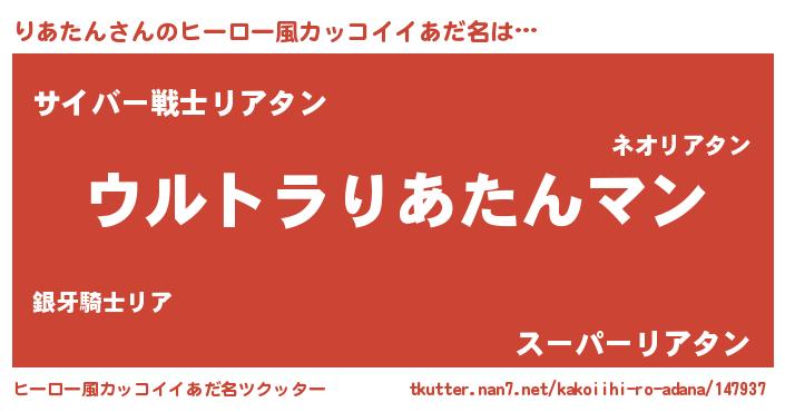 | 女子向けラノベタイトル風あだ名 | 『りあたんの雑貨屋さん』『闇のりあたん』 |