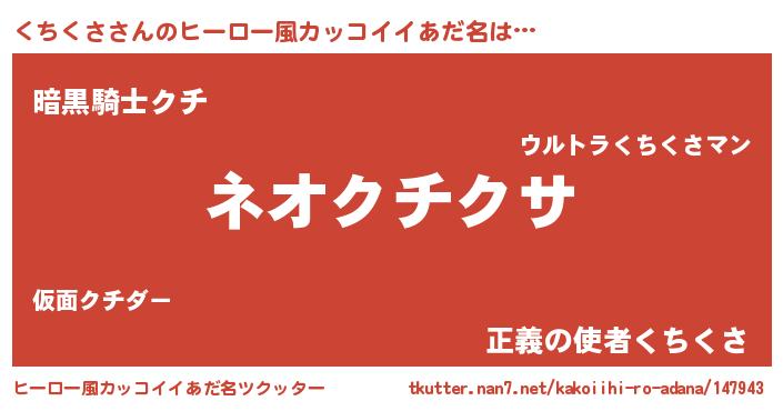 | 男性向けラノベタイトル風あだ名 | 『緋弾のクチクサ』 |