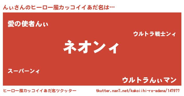 | 自動車の名前っぽいあだ名 | 『ヴィッン』『フェンーィ』『ンクア』 |