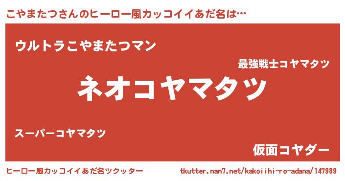 | 意味不明あだ名 | 『永久保存こやまたつ』『自称こやまたつ』 |