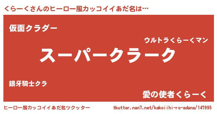 | 男性向けラノベタイトル風あだ名 | 『くらーくの憂鬱』 |