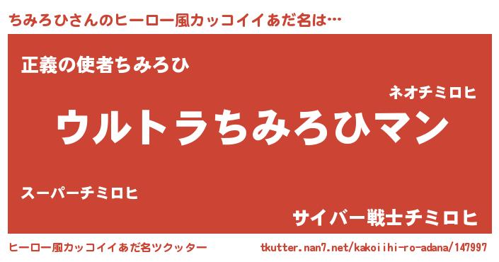 | 男性向けラノベタイトル風あだ名 | 『チミロヒスレイヤー』『緋弾のチミロヒ』 |