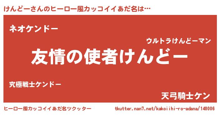 | 男性向けラノベタイトル風あだ名 | 『おまえをオタクにしてやるから、俺をけんどーにしてくれ! 』 |