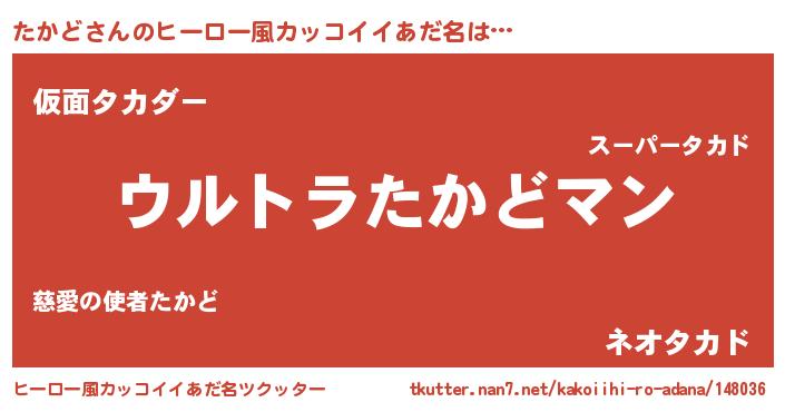 | ファンタジー風あだ名 | 『エターナルタカドー』『ヴァルタカーナ』 |