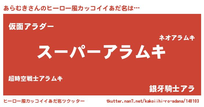 | 男性向けラノベタイトル風あだ名 | 『あらむきの憂鬱』『魔弾の王とあらむき』 |