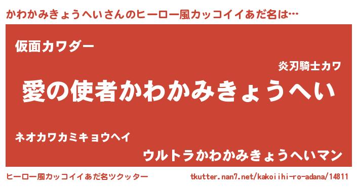 | 男性向けラノベタイトル風あだ名 | 『おまえをオタクにしてやるから、俺をかわかみきょうへいにしてくれ! 』 |