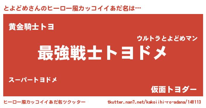 | 男性向けラノベタイトル風あだ名 | 『Re:とよどめから始める異世界生活』 |