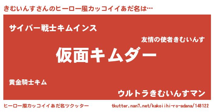 | 男性向けラノベタイトル風あだ名 | 『うちのきむいんすが世界を掌握している!』 |