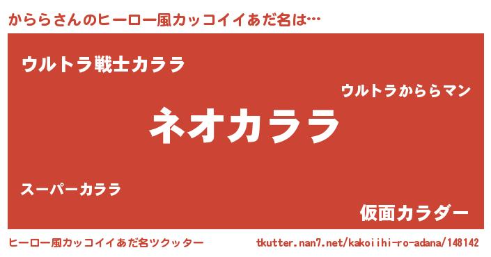 | 胡散臭い通販商品みたいなあだ名 | 『絶対に幸福をもたらす健康食品…その名も「からら」』 |