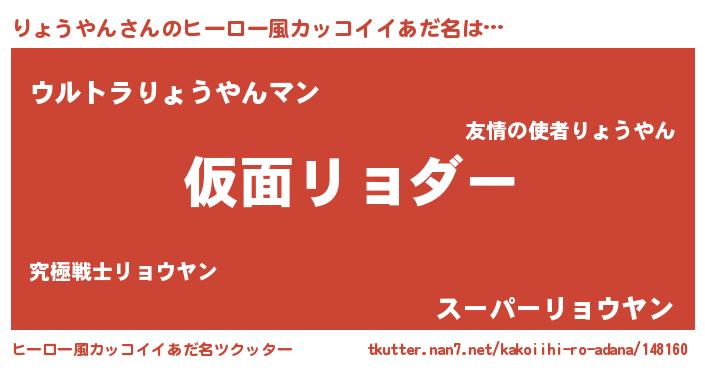 | 男性向けラノベタイトル風あだ名 | 『魔弾の王とりょうやん』 |
