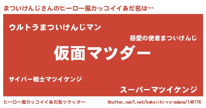 | 男性向けラノベタイトル風あだ名 | 『この素晴らしい世界にまついけんじを!』 |