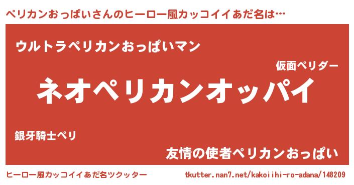 | 男性向けラノベタイトル風あだ名 | 『緋弾のペリカンオッパイ』 |