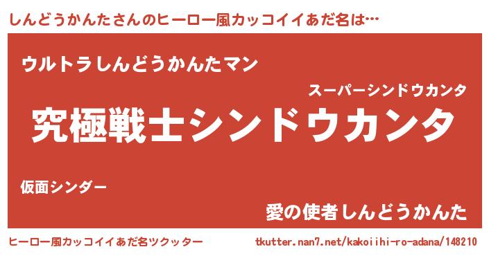 | 男性向けラノベタイトル風あだ名 | 『Re:しんどうかんたから始める異世界生活』 |