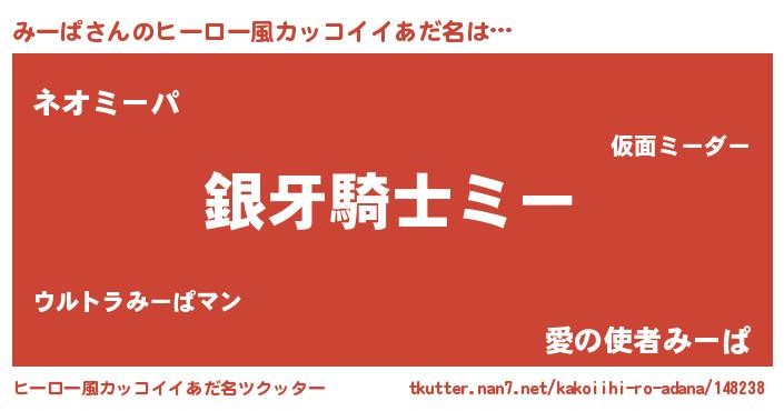 | 男性向けラノベタイトル風あだ名 | 『ダンジョンにみーぱを求めるのは間違っているだろうか』 |
