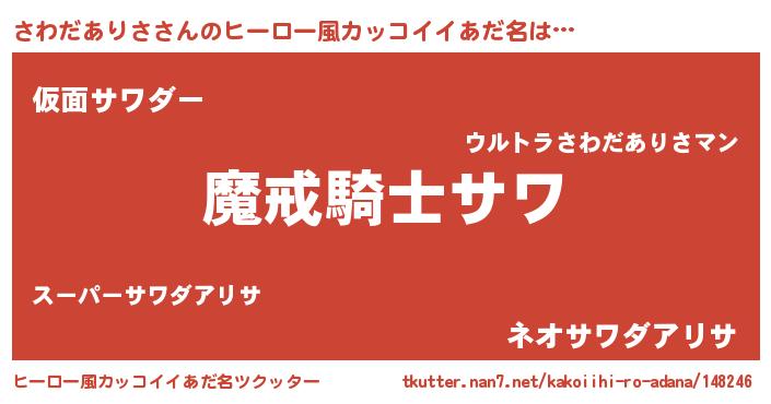 | ポケモン風あだ名 | 『ヒサワダアリサ』『サーワイ』 |