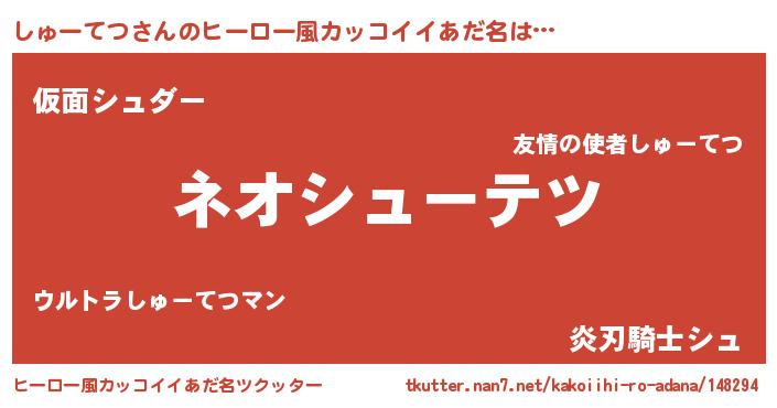 しゅーてつさんのヒーロー風カッコイイあだ名をツクッター!