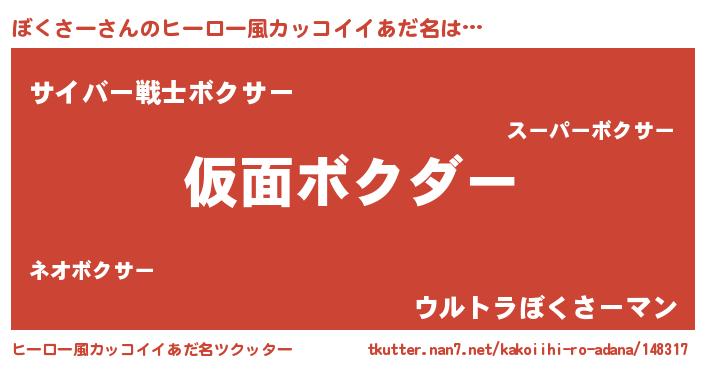 | 胡散臭い通販商品みたいなあだ名 | 『あなたにだけ特別に提供する限定10本のレアな日本酒…その名も「ぼくさー」』 |