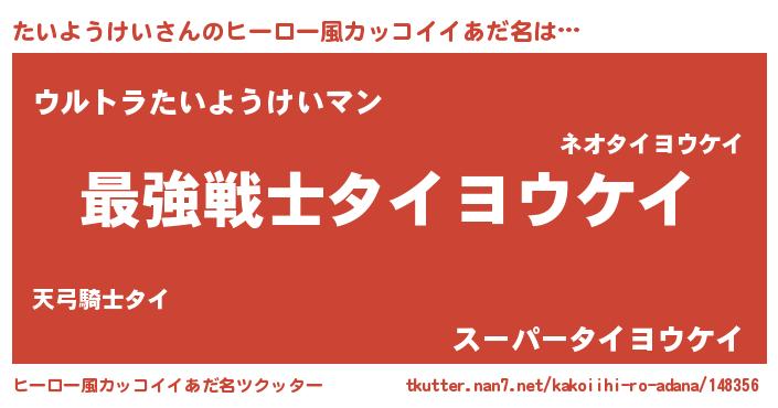 | 男性向けラノベタイトル風あだ名 | 『たいようけい~年齢イコール彼女いない歴の魔法使い~』 |