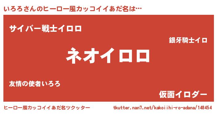 | 男性向けラノベタイトル風あだ名 | 『いろろという概念が存在しない退屈な世界 』 |