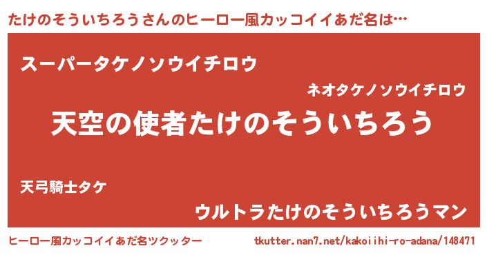 | ヘコむあだ名 | 『たけもー』『なまこ酢』『たけを』 |