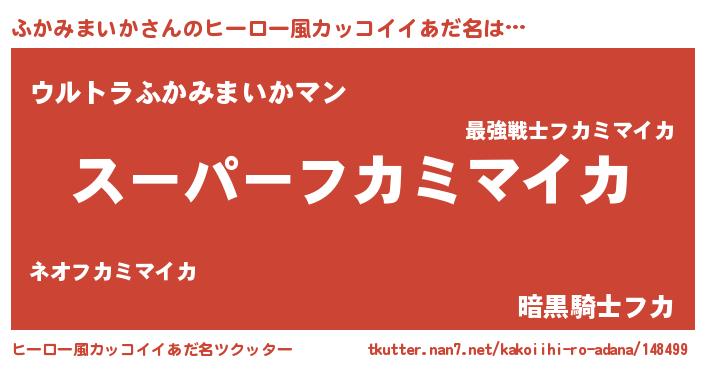 | 男性向けラノベタイトル風あだ名 | 『ふかみまいかに滅ぼされるだけの簡単なお仕事です』 |