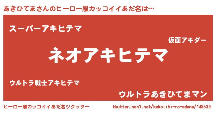 | 意味不明あだ名 | 『永久保存あきひてま』『自称あきひてま』 |