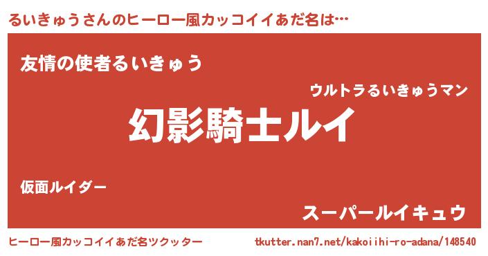 | 女子向けラノベタイトル風あだ名 | 『るいきゅう様がみてる』 |