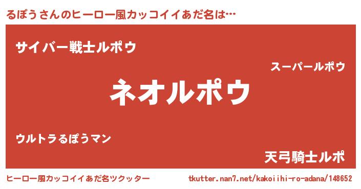 | ポケモン風あだ名 | 『ルポゴンZ』『ゼニルポ』『ヒルポウ』 |