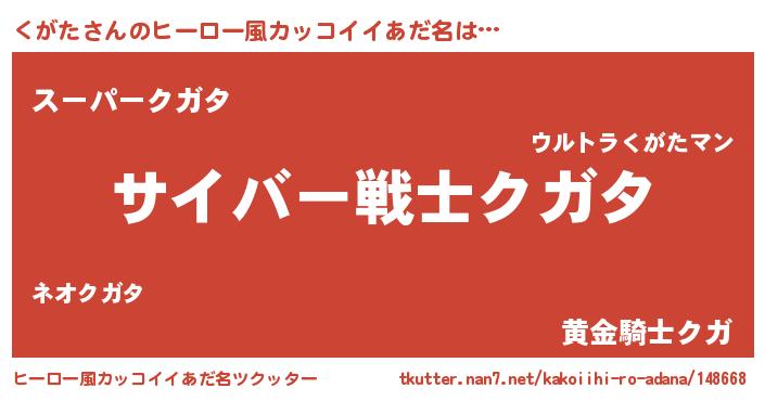 | 男性向けラノベタイトル風あだ名 | 『転生したらくがただった件』 |
