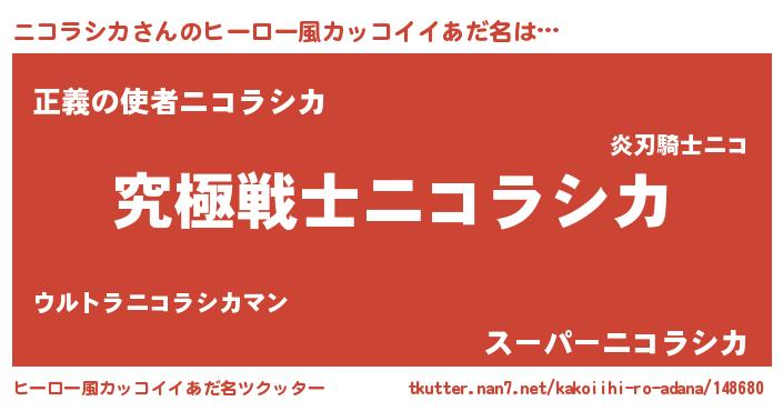 | 男性向けラノベタイトル風あだ名 | 『ニコラシカに滅ぼされるだけの簡単なお仕事です』 |