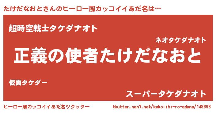 | 男性向けラノベタイトル風あだ名 | 『はたらくたけだなおとさま!』 |