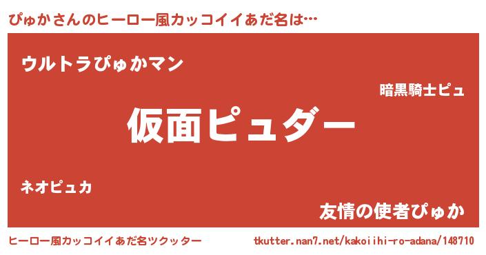 ぴゅかさんのヒーロー風カッコイイあだ名をツクッター!