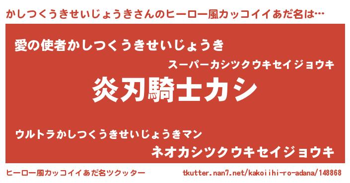 | 男性向けラノベタイトル風あだ名 | 『かしつくうきせいじょうき~年齢イコール彼女いない歴の魔法使い~』 |