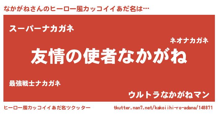 | 男性向けラノベタイトル風あだ名 | 『おまえをオタクにしてやるから、俺をなかがねにしてくれ! 』 |