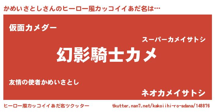 | 男性向けラノベタイトル風あだ名 | 『かめいさとしの嫁は女の子じゃないと思った?』 |