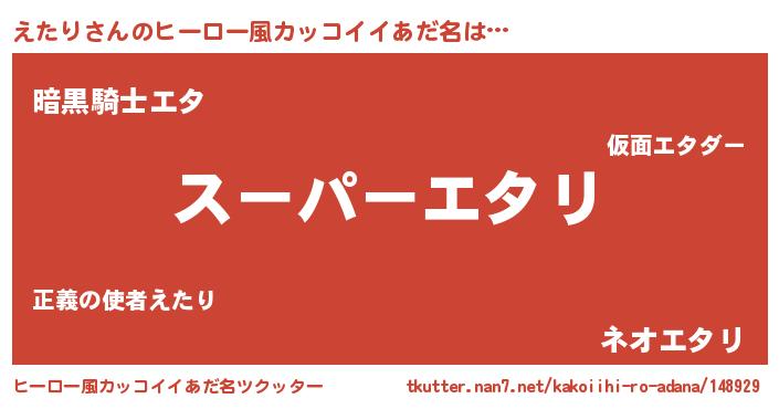 | 男性向けラノベタイトル風あだ名 | 『はたらくえたりさま!』『緋弾のエタリ』 |