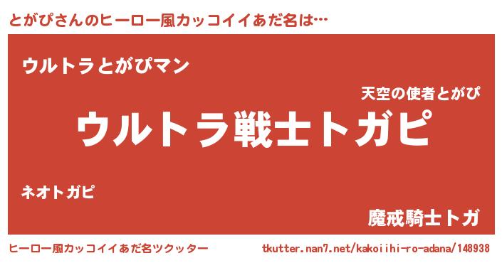 | 男性向けラノベタイトル風あだ名 | 『転生したらとがぴだった件』 |