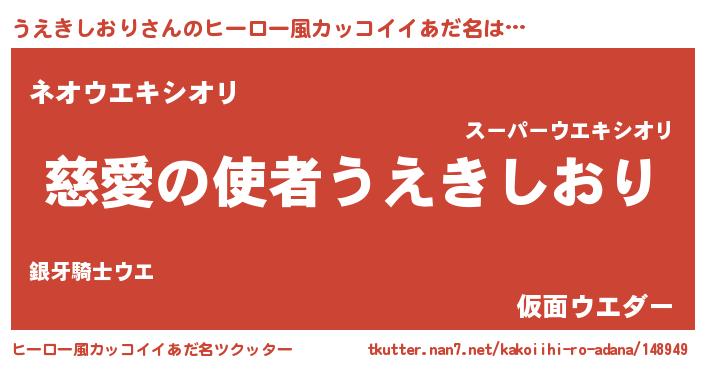 | 女子向けラノベタイトル風あだ名 | 『死神うえきしおりの再婚』 |