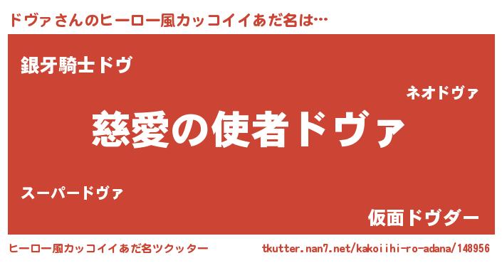 | 男性向けラノベタイトル風あだ名 | 『ドヴァ~年齢イコール彼女いない歴の魔法使い~』 |