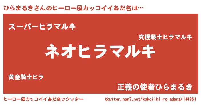 | ヘコむあだ名 | 『ひらまるき(笑)』『ひらにー』 |