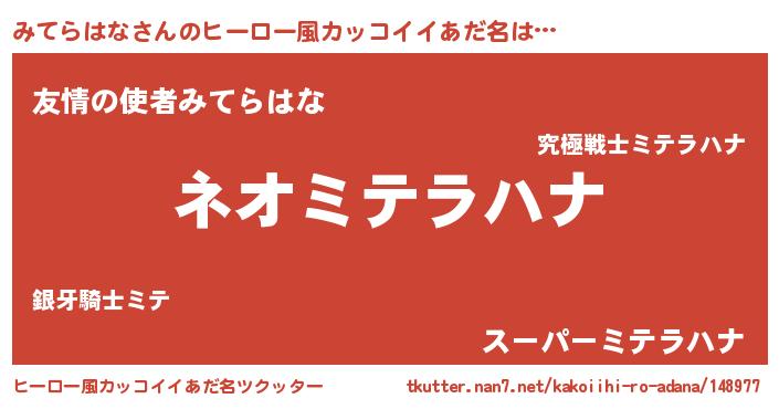| 意味不明あだ名 | 『永久保存みてらはな』『自称みてらはな』 |