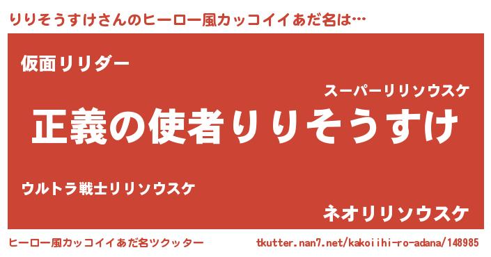 | ヘコむあだ名 | 『りりそうすけ(爆)』『りりもー』 |