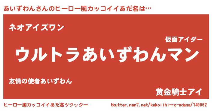 | 男性向けラノベタイトル風あだ名 | 『あいずわん~年齢イコール彼女いない歴の魔法使い~』 |