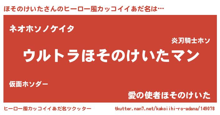| 男性向けラノベタイトル風あだ名 | 『はたらくほそのけいたさま!』 |