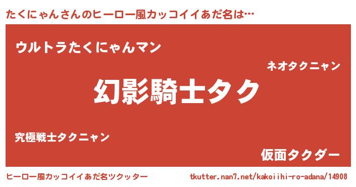 | 男性向けラノベタイトル風あだ名 | 『たくにゃん~年齢イコール彼女いない歴の魔法使い~』 |