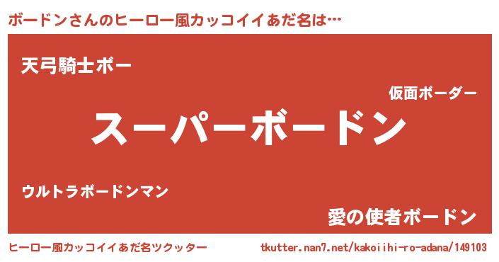 | 男性向けラノベタイトル風あだ名 | 『転生したらボードンだった件』 |