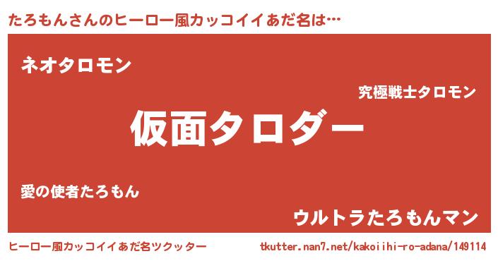 | 男性向けラノベタイトル風あだ名 | 『この素晴らしい世界にたろもんを!』 |